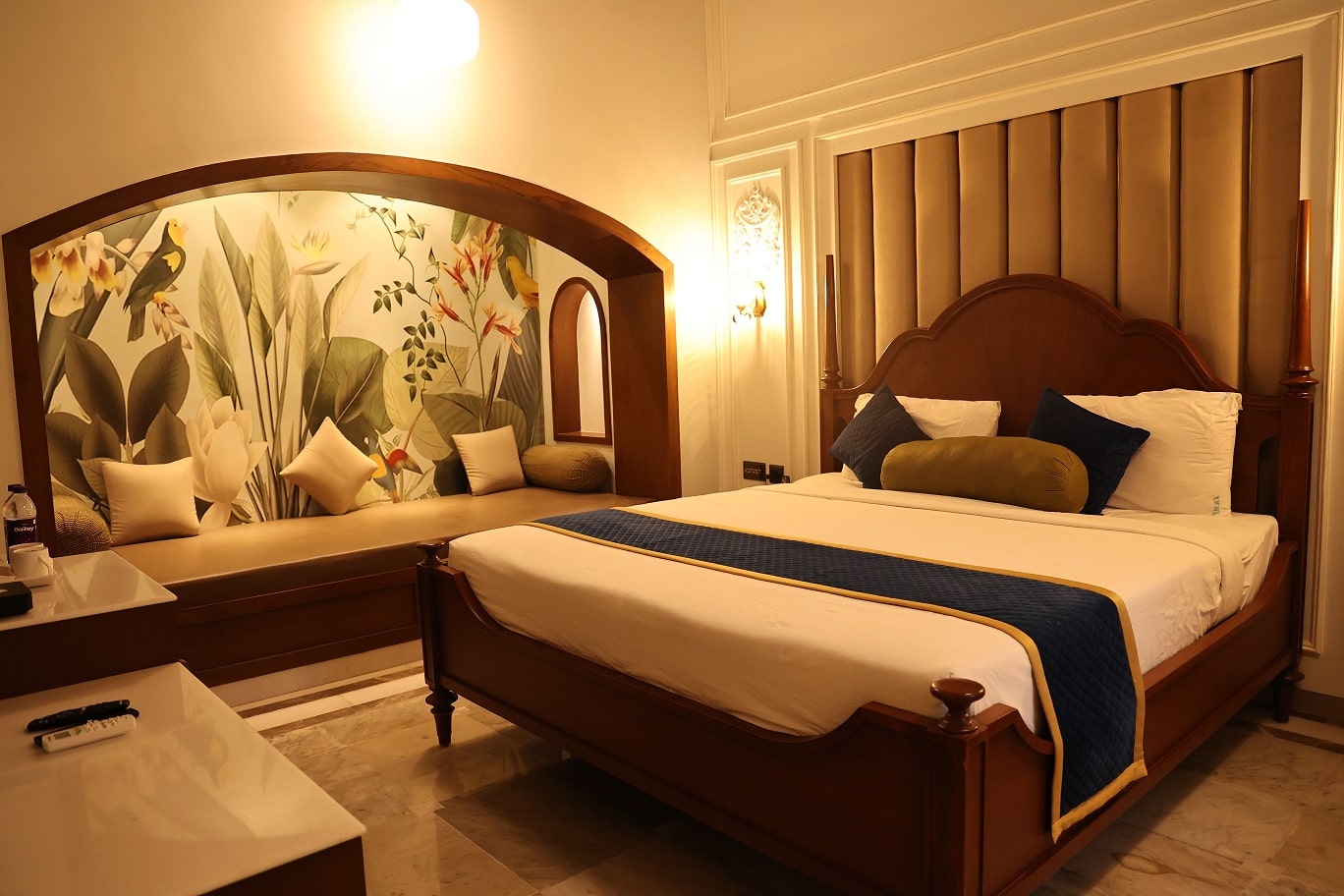 Elevate your stay with our junior suite rooms in Hyderabad. This accommodation not only preserves the allure of a bygone era but also boasts a delightful sit-out area that allows you to relax and immerse yourself in the surroundings.